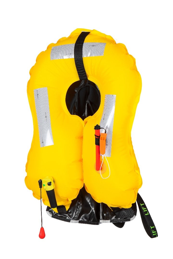 Kamizelka automatycznie napełnia się powietrzem po wpadnięciu do wody, odwraca znajdującą sie w wodzie osobę twarzą do góry i zawsze utrzymuje głowę nad powierzchnią wody. Wyposażona w uprząż do mocowania linek bezpieczeństwa (safe lines & life lines), taśmy odblaskowe i gwizdek. Kamizelka po napełnieniu ma jaskrawy żółty kolor. Miejsca w których kamizelka dotyka okolic karku, obszyto neoprenem który zapobiega powstawaniu odparzeń.