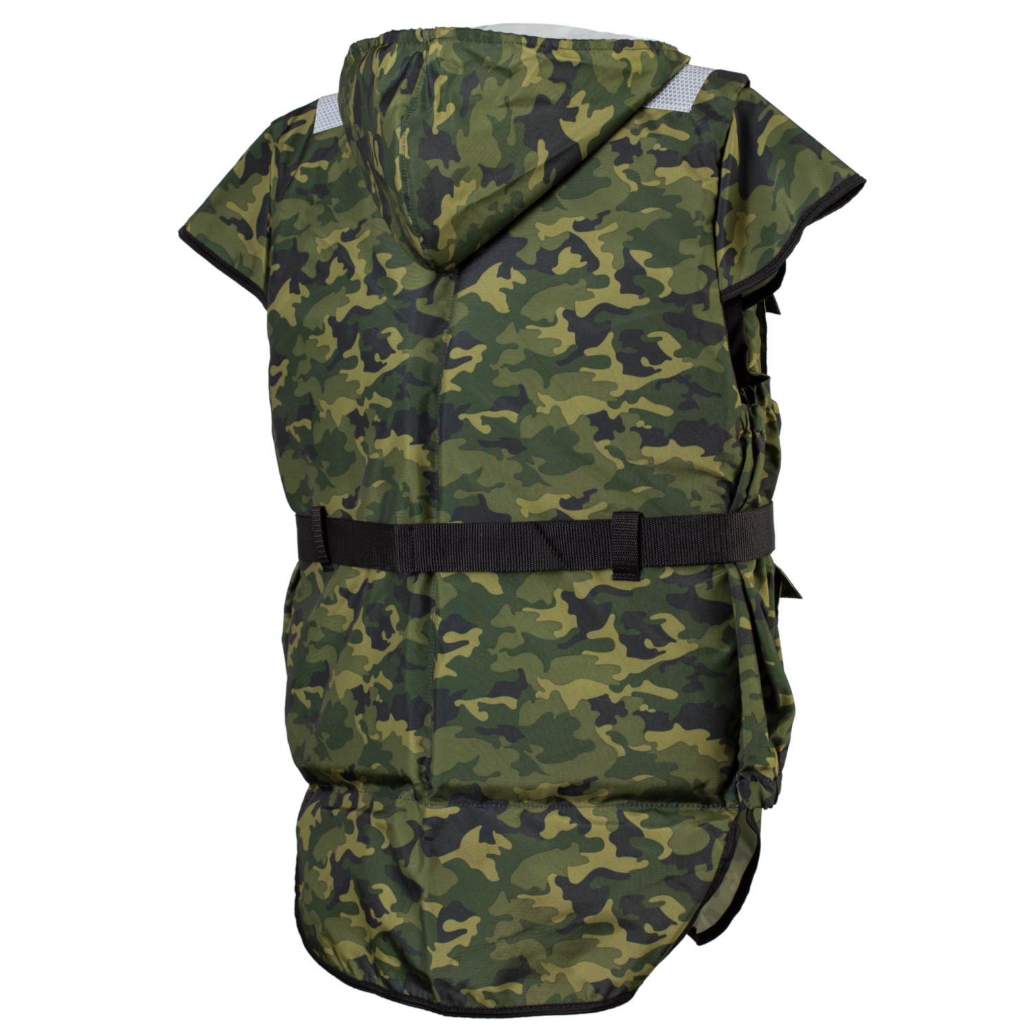 Kamizelka asekuracyjna w maskujące wzory, rozpinana z przodu na zamek. Kaptur oraz okapniki na udach i ramionach chronią przed deszczem. Na wysokości klatki piersiowej znajduje się specjalna patka na przynetę .